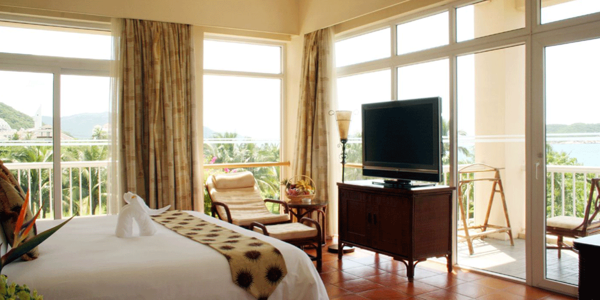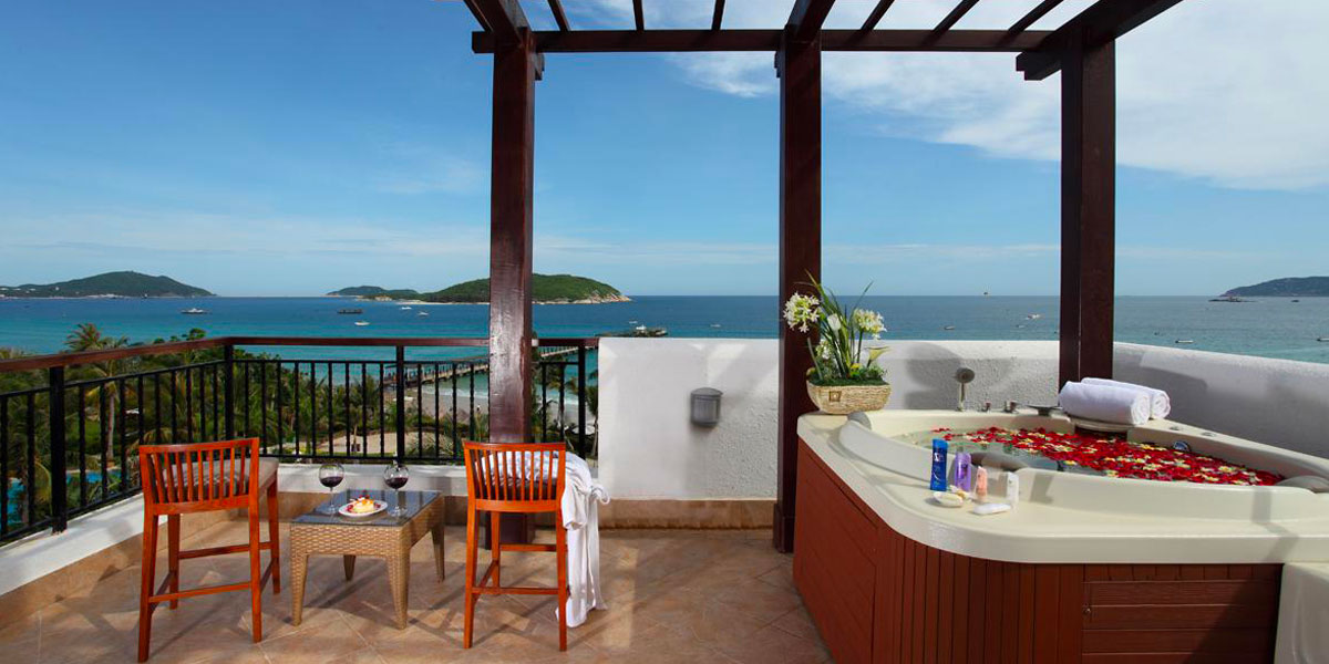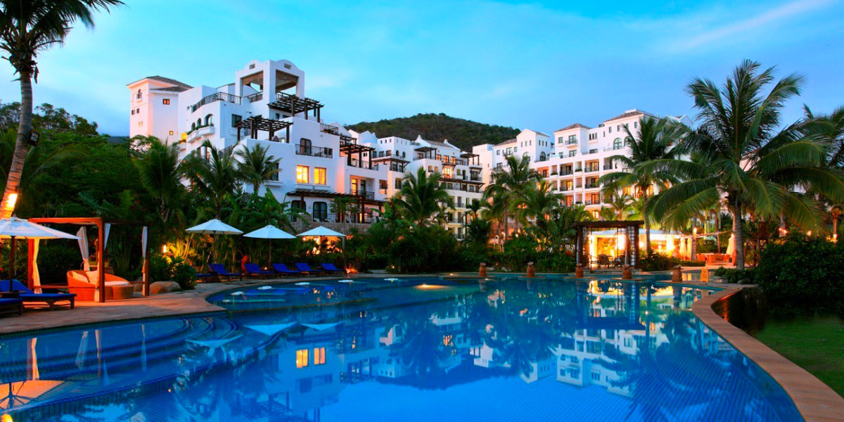 和城市酒店相比,度假酒店的建筑风格有更多的自由度、多样性和灵活性,也更容易创作出有原创性和个性的设计。这是三亚唯一的地中海式建筑风格,庄严但透着可爱的希腊式白房子,雪白的外墙象征着白云,蓝色的泳池及屋顶象征着大海,与崇尚自然的设计风格与美丽的亚龙湾融为一体。高低不同层次鲜明的房屋构筑了一个典型希腊式庭院。跨步可达海天相连的纯白粉末沙滩,典雅的希腊式白房子建筑外型巧妙融合了东南亚和地中海两种风格,在家具、设备和色彩上完美的体现不同异域风情的和谐结合,整体体现出爱琴海岸独有的舒适、品味、简约、浪漫气质。酒店带有中国禅意的园林设计,遍布珍贵热带植物花卉、品味独特的亭台、大面积的泳池水系,充分营造出一个“和、静、清”的绿色空间。