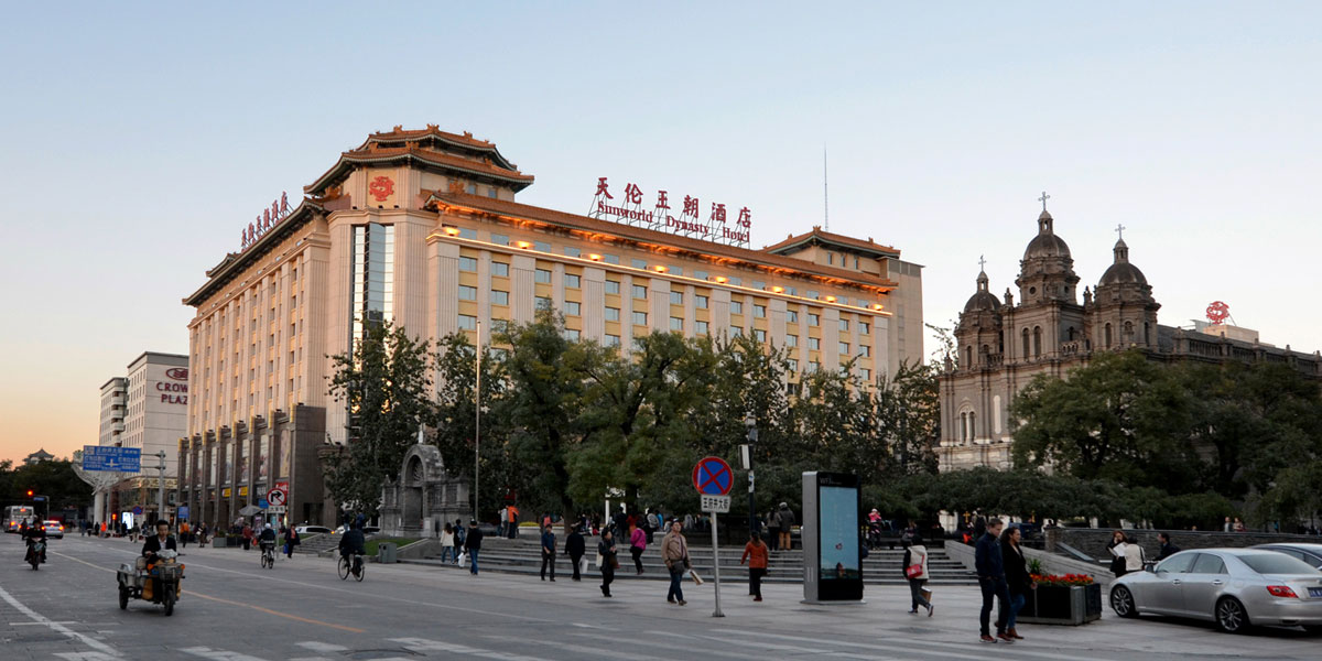 天伦王朝酒店隶属北京天伦饭店有限公司,坐落于王府井大街东侧,独踞古都核心地理位置,地处繁华而雍容幽静。紫禁城、天安门等名胜古迹举步之遥,金融街、CBD各大商圈近在咫尺,中央机关周边环绕,步行、乘车、地铁皆便捷通达。酒店共拥有395间设计精巧、风格迵异的客房及套房供您下榻,房间内布置高贵典雅,加之完备现代的服务设施以及无微不至的贴心服务,让您倍感舒适方便。