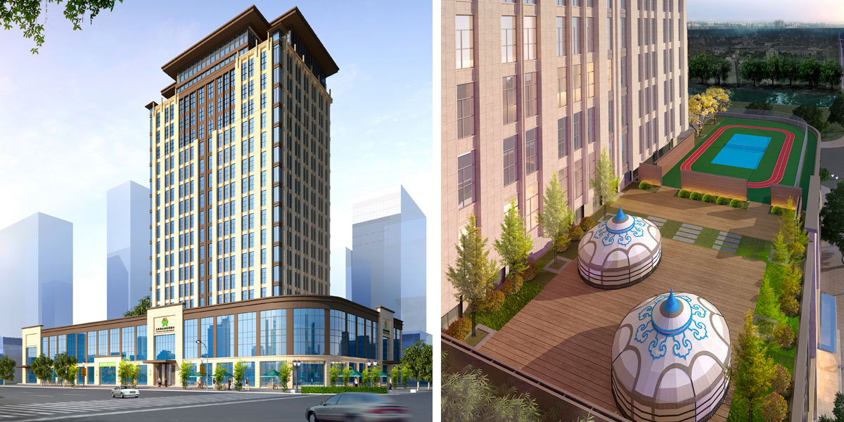 项目位于包头市九原区建华路与沙河街交汇处,交通便捷。整栋建筑包括了地下1层,地上19层,其中土默特佑旗农商行使用楼层从B1至10层,1至3层为营业厅,4层为餐厅,5层为机房及监控,6-9为办公层,10层为员工活动中心及客房。
